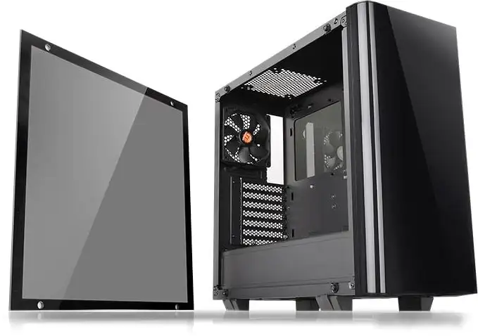 Корпус Thermaltake View 21 TG подходит для геймеров и хорош для сборки мощного ПК. Он выполнен из стали и стекла с толщиной стенок 4 мм, что придает ему прочность и стильный внешний вид. В корпусе есть место для материнских плат форматов ATX, micro-ATX и mini-ITX, а блок питания располагается снизу для лучшей вентиляции. Охлаждение осуществляется воздушным способом, и корпус поддерживает до шести вентиляторов — это помогает поддерживать низкую температуру внутри системы. Спереди есть три отверстия для вентиляторов по 120 мм, сверху — по одному 120 и 140 мм, сзади — по одному 120 мм, снизу — 120 мм. Он оборудован пылевыми фильтрами, уменьшающими загрязнение внутри. Есть прозрачное окно на боковой панели, что позволяет видеть внутренние компоненты. Вместительность корпуса позволяет установить видеокарты длиной до 410 мм и кулеры высотой до 160 мм.