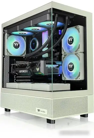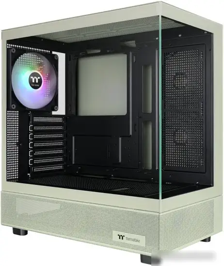 Корпус Thermaltake View 270 TG ARGB Matcha Green представляет собой стильное решение для игровых ПК. Он выполнен из стальной панели с прозрачным закалённым стеклом, что позволяет демонстрировать внутренние компоненты. Корпус поддерживает материнские платы форматов ATX, micro-ATX, eATX и mini-ITX, и рассчитан на видеокарты длиной до 420 мм. Передняя и верхняя панели позволяют установить крупные системы жидкостного охлаждения, подходящие для мощных кулеров и радиаторов до 360 мм. В корпусе есть место для установки до 9 вентиляторов, из которых один — с адресной RGB-подсветкой. В комплекте идёт один вентилятор с ARGB-подсветкой. Он подключается через стандартные разъёмы USB и аудиовыхход. Внутренние отсеки позволяют разместить накопители 2.5 и 3.5 дюйма. Корпус оснащен семью расширительными слотами и возможностью установки мощных видеокарт и высоких кулеров. Благодаря компактным размерам и хорошему вентиляционному потенциалу он отлично подходит для геймеров и энтузиастов.