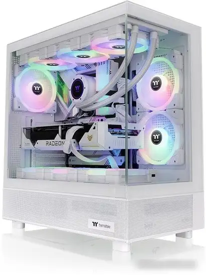 Корпус Thermaltake View 270 TG ARGB Snow — это стильный и прочный корпус для компьютера в белом цвете. Он подходит для игровых систем и может вместить материнские платы разных размеров, включая ATX и Micro-ATX. В корпусе есть большое прозрачное окно из закалённого стекла, через которое видно внутренности системы. Он поддерживает жидкостное охлаждение с радиаторами до 360 мм, что помогает держать компоненты в прохладе. В корпусе уже установлены вентиляторы с адресной RGB-подсветкой, а всего их можно установить до 9 штук. Есть удобные порты USB 3.2 и аудиовыход, а также место для установки видеокарты длиной до 420 мм. Этот корпус подходит тем, кто хочет собрать мощную игровую машину и любит видеть внутренности системы.