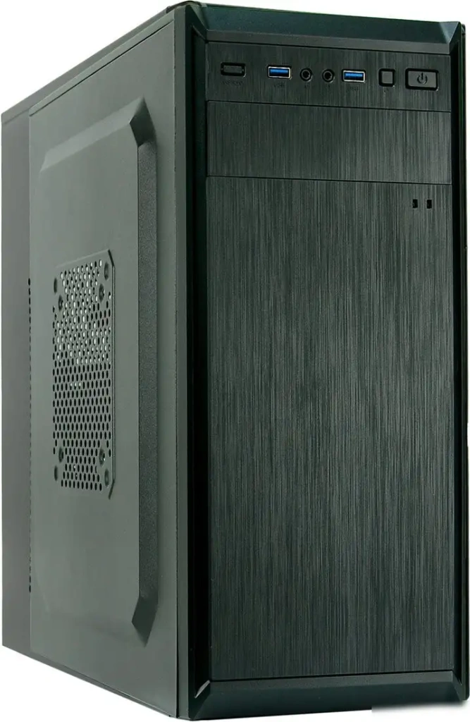 Корпус Vicsone F3X — это удобная и практичная модель mid tower, которая подходит для материнских плат форматов ATX и micro-ATX. Он выполнен из пластика и металла, что обеспечивает надежность и прочность конструкции. В корпусе есть два отсека для 5.25-дюймовых накопителей, что удобно для установки оптических приводов или других устройств. Передняя панель имеет два USB 2.0 и один USB 3.2 Gen 1 порт, а также аудиоразъемы для микрофона и наушников, что позволяет легко подключать периферийные устройства. Блок питания мощностью 600 Вт размещается сверху, облегчая сборку и обслуживание системы. Корпус не оснащен подсветкой или вентиляторами в комплекте, но имеет возможность установки дополнительных вентиляций. Для хранения данных доступны стандартные отсеки без особых сложностей в установке. Его размеры: 410 мм по высоте и глубине, 190 мм по ширине, что делает его компактным решением для рабочего места.
