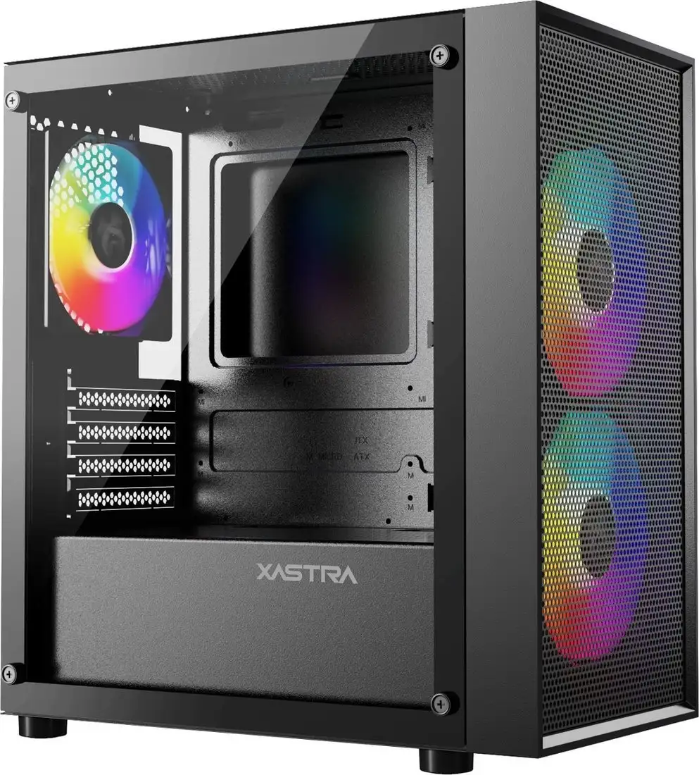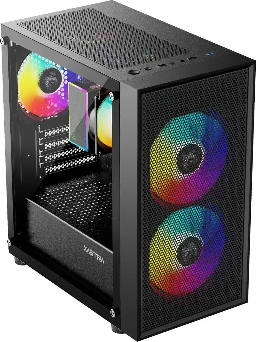 Корпус XASTRA A305M 3FRGB черного цвета подходит для мини-танков и обеспечивает хорошую вентиляцию с тремя предустановленными вентиляторами. Он выполнен из пластика, металла и закаленного стекла, что делает его прочным и стильным. На передней панели есть прозрачное окно и пылевые фильтры, обеспечивая чистоту внутри корпуса. Поддерживает материнские платы форматов micro-ATX и mini-ITX, а также легко размещает видеокарты до 285 мм и кулеры до 160 мм. Благодаря нескольким слотам для вентиляторов и возможности установки жидкостного охлаждения, корпус отлично справляется с охлаждением компонентов. Внутри есть отсек для одного привода 2.5 дюйма и два для накопителей 3.5 дюйма, что удобно для хранения данных. Передняя панель оснащена скоростными портами USB 3.2 и двумя аудиоразъемами для удобства подключения устройств. Он легко переносится благодаря компактным размерам и весу 4.3 кг. Этот корпус подходит для тех, кто хочет собрать эффективную и стильную систему с хорошей вентиляцией и расширением.