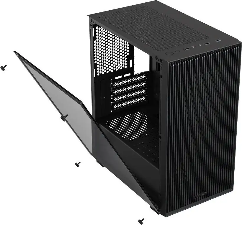 Mini Tower, БП отсутствует, для плат micro-ATX/mini-ITX, с 3 вентиляторами в комплекте, окно: закаленное стекло, видеокарта до 275 мм, охлаждение ЦП до 155 мм, пылевые фильтры, 2xUSB 2.0, 1xUSB-A 3.2 5Гбит/с, цвет черный