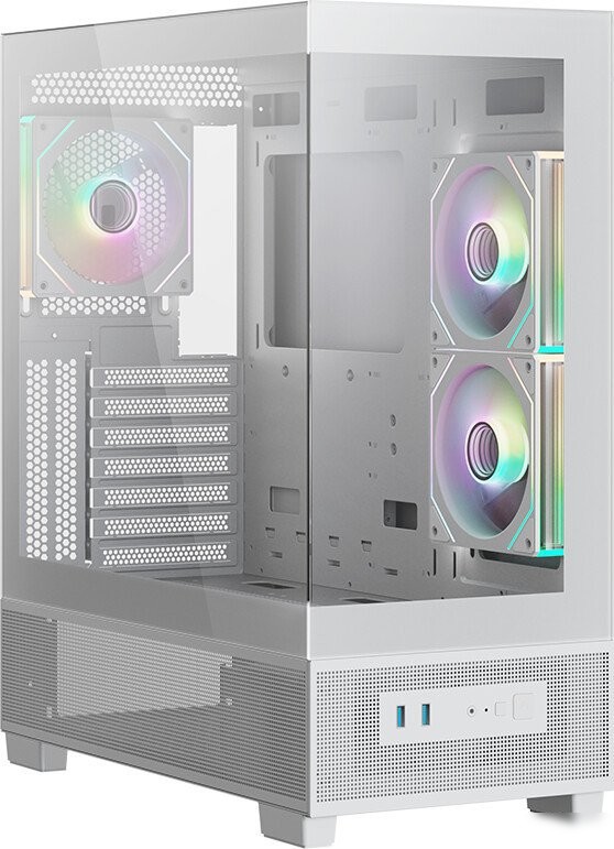 Mid Tower, БП отсутствует, для плат ATX/micro-ATX/mini-ITX/eATX, с 3 вентиляторами в комплекте, с контроллером вращения, окно: закаленное стекло, видеокарта до 400 мм, охлаждение ЦП до 165 мм, пылевые фильтры, 2xUSB-A 3.2 5Гбит/с, 1xUSB-C 3.2 5Гбит/с, цвет белый