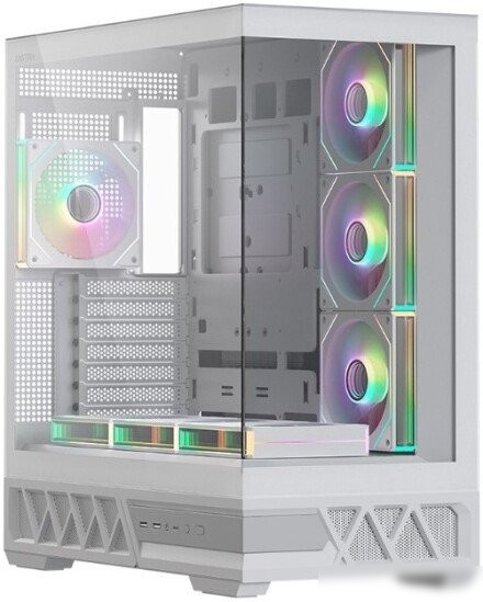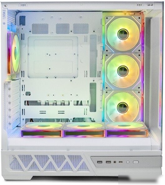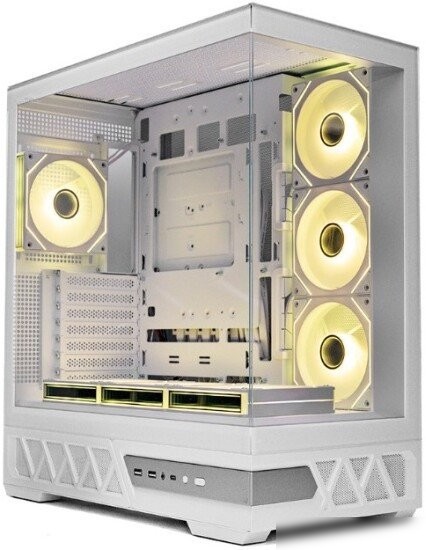 Mid Tower, БП отсутствует, для плат ATX/micro-ATX/mini-ITX, с 7 вентиляторами в комплекте, с контроллером вращения, окно: закаленное стекло, видеокарта до 420 мм, охлаждение ЦП до 170 мм, пылевые фильтры, 2xUSB-A 3.2 5Гбит/с, 1xUSB-C 3.2 5Гбит/с, цвет белый