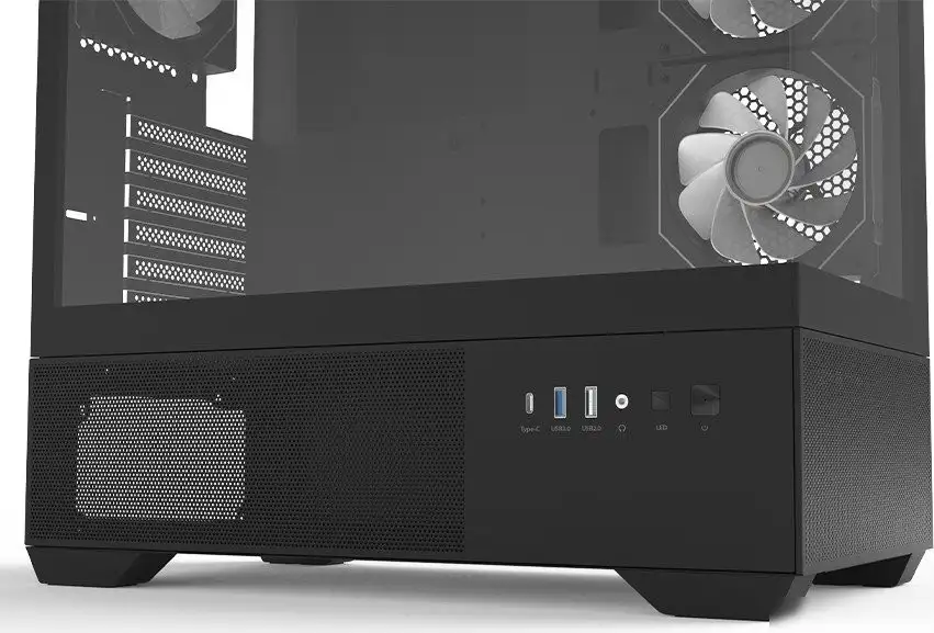 - Большие стеклянные окна — дают возможность видеть внутренние компоненты и зонировать дизайн корпуса.
