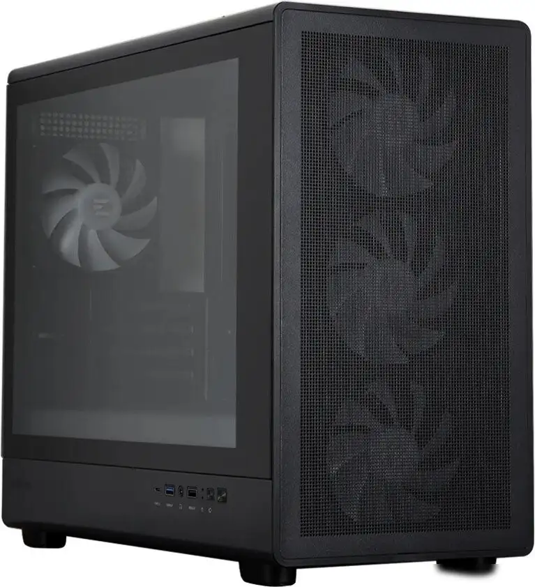 Корпус Zalman M5 черного цвета сочетает в себе стильный дизайн и функцию надежной защиты. Он подходит для мини-тайеров с материнками формата micro-ATX и mini-ITX и обеспечивает удобное размещение комплектующих. В корпусе есть место для видеокарт до 410 мм и процессорных кулеров высотой до 180 мм. Он оснащен четырьмя вентиляторами, которые обеспечивают хорошую вентиляцию, и поддерживает жидкостное охлаждение до 360 мм. Стеклянная боковая панель с закаленным стеклом дает возможность видеть компоненты внутри. В корпусе есть пылевые фильтры сверху и сбоку, что помогает поддерживать чистоту. Удобство в использовании обеспечивает множество USB-портов, включая USB-C, и разъемы для аудио. Вместе с корпусом идут вентиляторы, а управление скоростью вентиляторов идет через встроенный контроллер. Также есть отсек для накопителей 2.5 и 3.5 дюймов, а крепление дисков — безвинтовое. Всё это создаёт комфортные условия для установки мощной системы охлаждения и долгую работу ПК.