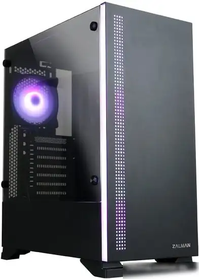 Корпус Zalman S5 черного цвета создает стильный вид благодаря стеклянной панели и подсветке ARGB, которую можно легко регулировать. Он подходит для игровых сборок и поддерживает материнские платы форм-фактора ATX, micro-ATX и mini-ITX. В корпусе предусмотрено восемь мест для вентиляторов, из которых уже установлены два кулера, что обеспечивает хорошее охлаждение системы. Воздушное охлаждение позволяет сохранять низкую температуру внутри корпуса при длительной работе. Есть внутренние отсеке для четырёх SSD или HDD и комбинированный отсек для нескольких накопителей. Он поддерживает видеокарты длиной до 340 мм и кулеры высотой до 160 мм, что дает возможность установить мощные компоненты. В корпусе есть пылевые фильтры сверху и снизу, предотвращающие попадание пыли внутрь. На передней панели есть порты USB 2.0, USB 3.0, один USB Type-C, а также аудиоразъемы для удобства подключения устройств.