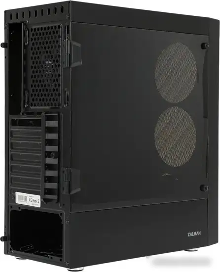 Корпус Zalman ZM-T7 — это средний корпус для компьютера в черном цвете. Он сделан из стали и имеет прозрачное окно из закаленного стекла, через которое видно внутренности. В корпусе есть место для материнской платы формата ATX и внутри можно разместить видеокарту длиной до 305 мм и кулер высотой до 160 мм. В корпусе уже стоят два вентилятора по 120 мм, и всего можно установить до восьми вентиляторов для хорошего охлаждения. На передней панели есть порты USB 2.0 и USB 3.2 Gen 1, а также разъем для наушников и микрофона. Внутри есть два отсека для SSD и два для жестких дисков 3.5 дюймов, что удобно для хранения данных.