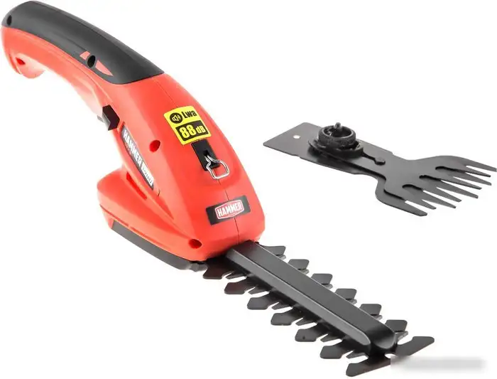 Кусторез и ножницы Hammer SR7.2 работают на встроенном аккумуляторе Li-ion напряжением 7 В и ёмкостью 1.5 А·ч. Они легкие — вес всего 1 кг — и удобные для работы. Устройство сочетает в себе функции кустореза и садовых ножниц, позволяя ухаживать за кустами и травой одновременно. Лезвия длиной 120 мм отлично справляются с ветками диаметром до 8 мм, а ширина лезвий для травы — 90 мм. Скорость реза достигает 1100 движений в минуту, что обеспечивает быструю работу. В комплект входит аккумулятор, зарядное устройство, насадка кусторез и садовые ножницы, что делает набор готовым к использованию сразу после покупки. Время полной зарядки аккумулятора — 4 часа, что позволяет быстро подготовить инструмент к работе. Устройство не имеет функции регулировки угла наклона, что упрощает его конструкцию и работу. Это удобный инструмент для ухода за садом, который легко управлять и хранить.