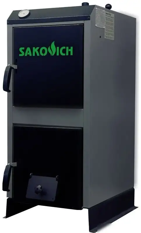Отопительный котел Sakovich Standart Pro мощностью 14 кВт отлично подходит для обогрева помещений площадью до 130 м². Он работает на твердом топливе — дровах, угле или торфе, что делает его универсальным и надежным. Корпус котла сделан из прочной стали толщиной 5 мм, а объем теплообменника составляет 46 литров, что обеспечивает хорошую эффективность нагрева. Этот одноконтурный котел не имеет автоматической подачи топлива и дисплея, но обеспечивает стабильную работу с температурой в контуре от 53 до 90 °C. Важной особенностью является его размещение — напольное, а камера сгорания открытая. Котел устойчив к высоким температурам и обладает КПД 82 %, что помогает экономить топливо и лучше сохранять тепло.