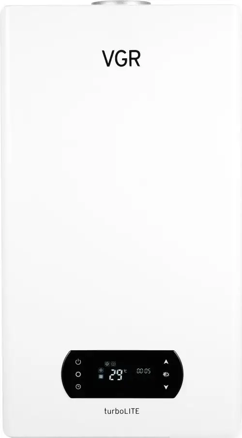 Отопительный котел VGR TurboLITE VUW 23 обладает мощностью 23,2 кВт, что обеспечивает быстрое и эффективное отопление помещения. Он работает на природном газе и оснащен двумя контурами для отопления и горячей воды, что облегчает подключение и использование. Котел имеет запирающуюся камеру сгорания, обеспечивающую безопасность эксплуатации. Его размер компактный: высота — 68 см, ширина — 38 см, глубина — 24,5 см, а вес всего 24 кг, что позволяет легко установить устройство в любом помещении. В котле есть дисплей, который показывает важные параметры работы. Он поддерживает температуру горячей воды от 30 до 60 °C и температуру в отопительном контуре от 30 до 80 °C. Также устройство защищено от замерзания и перегрева, что обеспечивает его надежность и долговечность в зимний период. Модель не имеет Wi-Fi и встроенного стабилизатора, но обеспечивает стабильную работу при различных условиях. Это отличный выбор для дома благодаря его эффективности и простоте обслуживания.