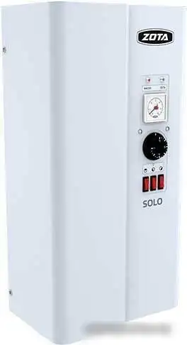 Отопительный котел Zota Solo 6 мощностью 6 кВт хорошо справляется с обогревом помещений площадью до 60 м². Он выполнен из прочной стали с теплообменником, что обеспечивает долговечность и хорошую теплоотдачу. Электрокотел работает при напряжении 220V или 380V и является одноконтурным, что удобно для использования в домашних условиях. Он устанавливается на стену и имеет классический белый цвет, отлично вписывающийся в любой интерьер. В устройстве есть встроенный термостат для точного контроля температуры и функции защиты от замерзания и перегрева для безопасной работы. Котел обладает высокой эффективностью — КПД достигает 99%. Он оснащен системой автодиагностики для быстрого выявления неисправностей. Максимальная температура в контуре варьируется от 30 до 85 °C, а минимальное давление — 3 бара, что обеспечивает стабильную работу. Размеры компактные: высота 67,5 см, ширина 33 см, глубина 22,5 см, вес 19,5 кг, что делает его легким для монтажа и обслуживания.