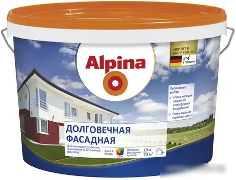 Краска Alpina Долговечная фасадная (База 1, 10 л)