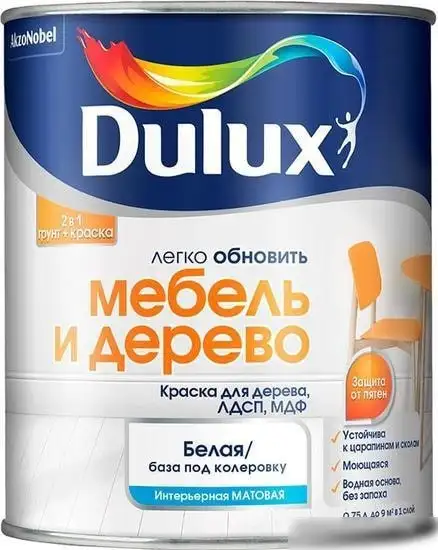 Краска Dulux Мебель и Дерево 2 л BW (белый)