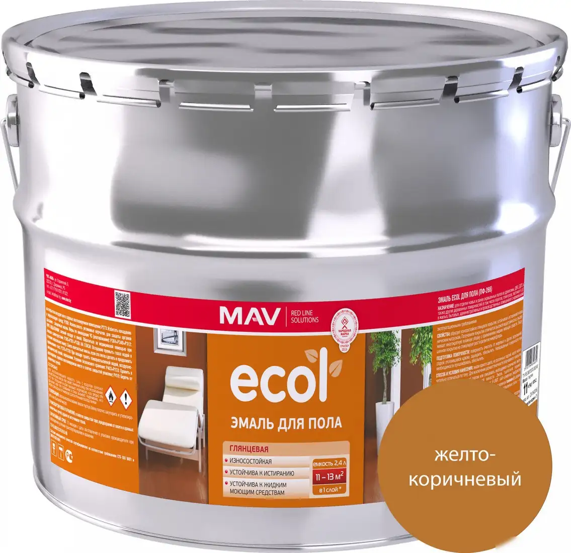Эмаль MAV Ecol ПФ-266 11 кг (желто-коричневый)