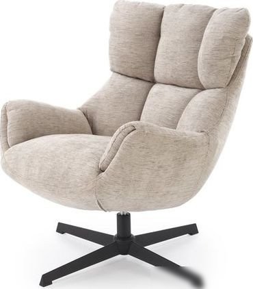 Кресло-глайдер Halmar Orinoko выполнено из мягкой бежевой ткани и прочного металлического каркаса, что обеспечивает комфорт и долговечность. Оно легко вращается и помогает удобно сидеть в любой ситуации. Модель не имеет механизма трансформации или сложных функций, что делает её простой в использовании. Подходит для тех, кто ищет комфортное кресло для отдыха или работы. Размеры кресла — 72 см в ширину и 87 см в высоту, а высота сиденья составляет 46 см. Вес кресла составляет 15 кг, оно устойчиво и не шатается. Черные ножки добавляют изделию стильный вид. Благодаря широкому сиденью и мягкой обивке он создаст уют и комфорт в любом интерьере. Такой дизайн отлично впишется в современный домашний интерьер или офис. Прочное и удобное кресло легко перемещать и использовать ежедневно.