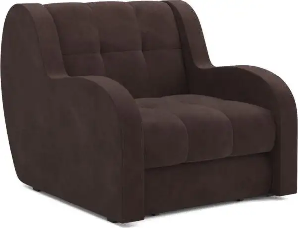 Кресло-кровать Мебель-АРС Барон выполнено из мягкой ткани велюр в цвете молочный шоколад, что создаёт уютную атмосферу. Оно легко превращается из кресла в кровать благодаря механизму аккордеон, который быстро складывается и раскладывается. Размер спального места составляет 200 см в длину и 75 см в ширину, что подходит для комфортного сна. Кресло имеет вместительный ящик для белья, чтобы удобно хранить постельные принадлежности. Высота сиденья составляет 40 см, а общая высота — 88 см, что обеспечивает удобную посадку и комфорт при использовании. Ширина кресла — 96 см, а глубина — 110 см; его вес — 53 кг. Механизм трансформации не требует ручного разборки — он автоматически превращает кресло в кровать. Цвет сиденья — коричневый, благодаря чему оно легко сочетается с разным интерьером. Эта модель не имеет съемных чехлов, поэтому рекомендуется аккуратное обслуживание.