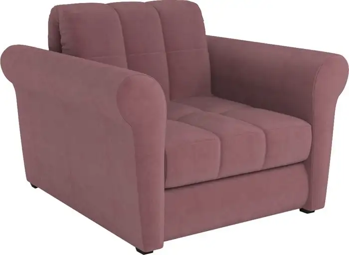 Кресло-кровать Мебель-АРС Гранд сочетает стильный дизайн и практичность. Оно выполнено из мягкого велюра пудрового цвета, что создает уютную атмосферу в комнате. Механизм трансформации "аккордеон" быстро превращает кресло в удобное спальное место длиной 194 см и шириной 72 см. Благодаря этому вы легко организуете дополнительное спальное пространство для гостей или для себя. Кресло не имеет съемного чехла, и конструкция не складная, но это делает его надежным и долговечным. Оно оснащено ящиком для белья, который помогает держать порядок в доме. Размеры позволяют размещать его в небольшом пространстве — шириной 107 см и глубиной 104 см. Высота кресла составляет 83 см, что обеспечивает комфорт при сидении и уравновешенность при трансформации. Благодаря простоте использования вы быстро можете подготовить кровать для отдыха или работы.