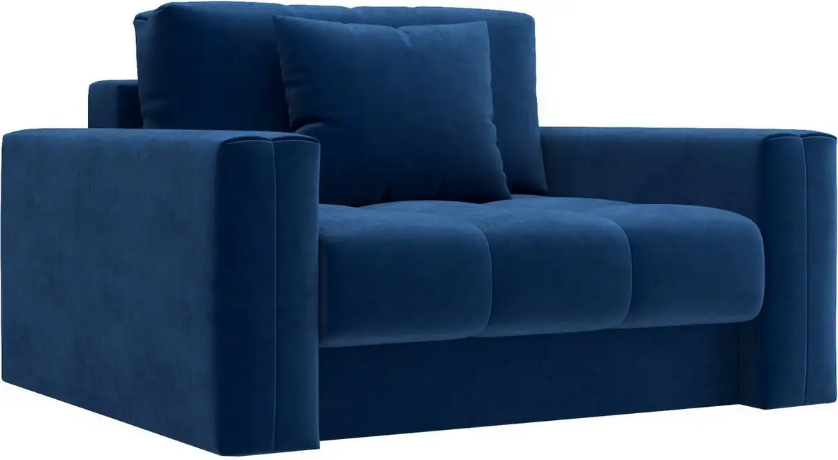 Кресло-кровать Mio Tesoro Кастел (Velutto 26) удобно превращается в полноценное спальное место с помощью механизма тик-так (пантограф). Оно выполнено из прочных материалов — ДСП, ЛДСП и фанеры, что обеспечивает надежность и долговечность конструкции. Модель имеет вместительный ящик для белья, в который легко складывать постельные принадлежности и вещи. Максимальная нагрузка составляет 120 кг, что подходит для ежедневного использования. Сиденья обиты тканью синего цвета, а каркас и ножки выполнены в черном цвете, создавая стильный внешний вид. Благодаря компактным размерам — шириной 141 см и глубиной 120 см, оно легко впишется в разные комнаты. Высота кресла 87 см, а высота сиденья — 40 см, что обеспечивает комфортное сидение. Вес кресла составляет 90 кг, его конструкция не вращается и не имеет подставки для ног, но это компенсируется удобством трансформации. Этот предмет мебели сочетает стиль, функциональность и практичность для вашего дома.