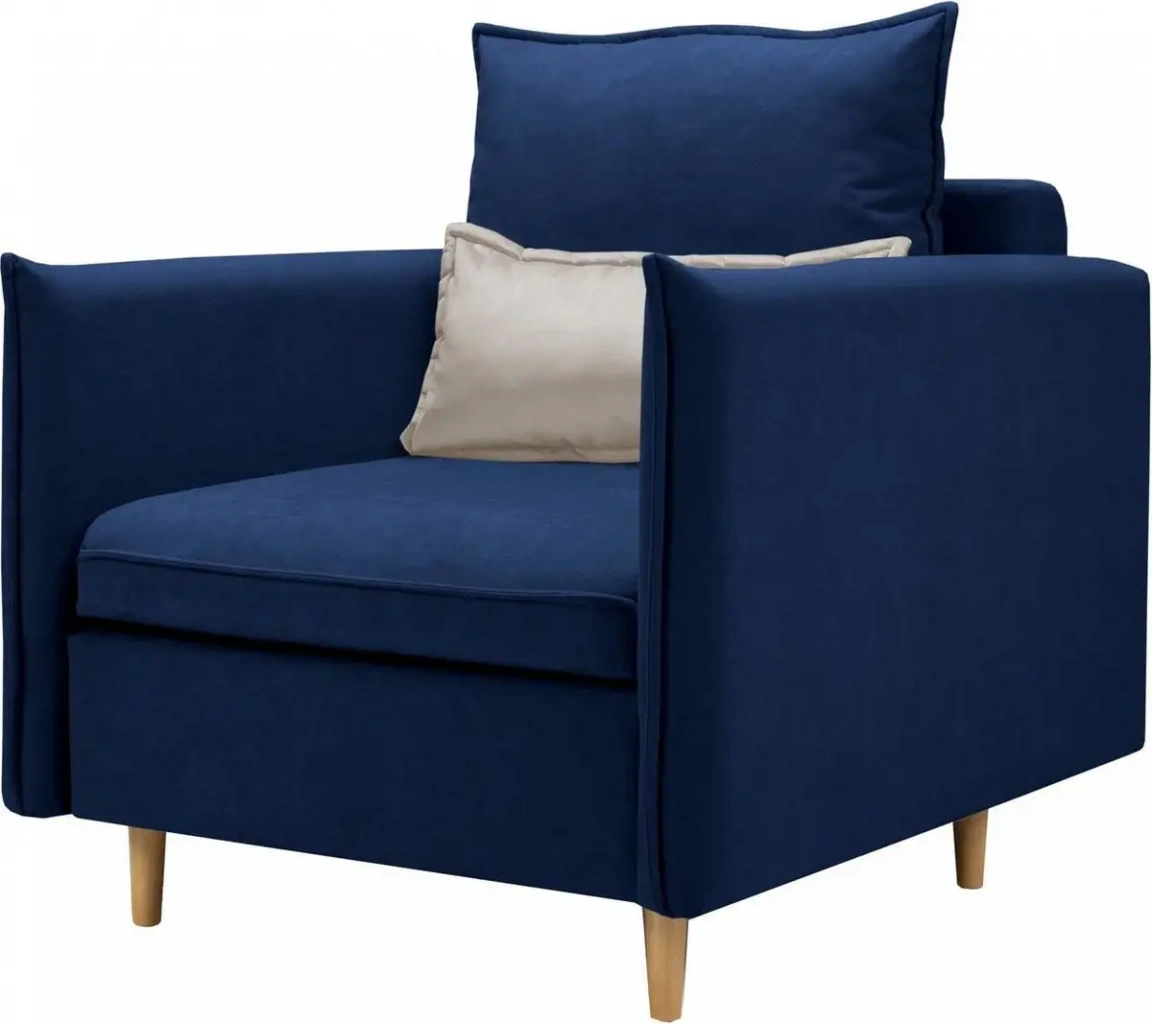 Кресло-кровать Mio Tesoro Оливер легко превращается в полноценное спальное место благодаря механизму еврокнижка. Его сиденья выполнены из приятной на ощупь ткани ярких цветов — белого и синего, что добавляет свежести в любой интерьер. Удобная съемная чехолировка позволяет легко ухаживать за изделием. Каркас изготовлен из ЛДСП, дерева и фанеры — это обеспечивает прочность и долговечность. В кресле есть вместительный ящик для белья, куда удобно хранить постельные принадлежности. Модель не имеет складной конструкции или вращения, что делает её простым и надежным решением. Размеры позволяют комфортно разместиться взрослому человеку, а длина спального места 190 см подходит для большинства взрослых.