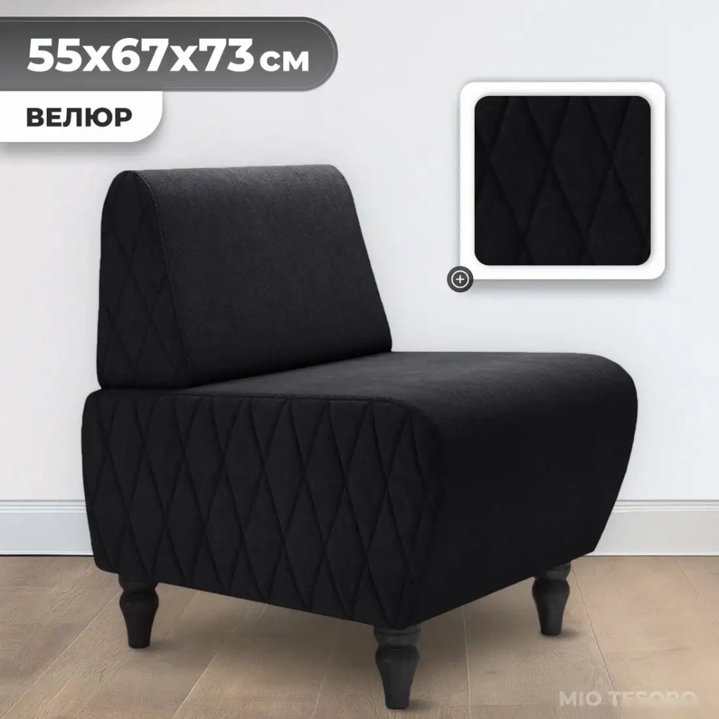 Интерьерное кресло MONOFIX Буно сочетает стильный дизайн и практичность. Оно выполнено из мягкой ткани (велюра) черного цвета, что создает уютную атмосферу в доме. Каркас сделан из дерева и фанеры, обеспечивая надежность и долгий срок службы. Кресло не имеет механизма трансформации или вращения, поэтому оно предназначено только для комфортного сидения. Размеры кресла позволяют легко расположиться — ширина 55 см и глубина 67 см. Высота сиденья составляет 43 см, что подходит для большинства людей. Модель не имеет съемных чехлов или ящика для белья, она проста в использовании. Вес кресла — 10.6 кг, что облегчает его передвижение. Благодаря классическому черному цвету, оно легко сочетаться с разным интерьером. Это удобное кресло подойдет для любого пространства, создавая уют и дополнение к интерьеру.