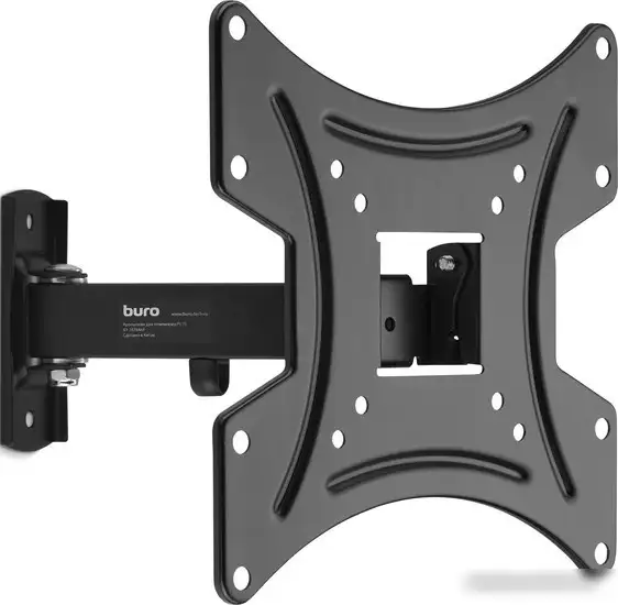 Кронштейн Buro FL1S предназначен для крепления ЖК-телевизоров на стену. Он подходит для экранов с диагональю от 20 до 48 дюймов и выдерживает нагрузку до 15 кг. Кронштейн легко крепится к стене и обеспечивает расстояние от 59 до 185 мм. Благодаря универсальным креплениям VESA (75x75, 100x100, 200x100, 200x200), он совместим с большинством телевизоров. Устройство включает функцию поворота на 180°, что позволяет удобно настроить угол просмотра. Также кронштейн наклоняется на 20° (-5°/+15°), что помогает уменьшить блики и улучшить качество изображения. Он выполнен в черном цвете, что легко сочетается с интерьером. Простая установка и надежная фиксация делают использование удобным.Этот кронштейн отлично подходит для тех, кто хочет максимально использовать пространство и настроить угол просмотра по своему желанию.