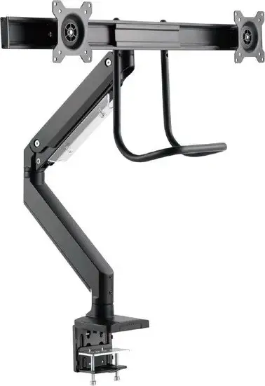 для мониторов, 17-32", 2 монитора, настольный, поворотный, с регулировкой высоты, кабель-канал, струбцинное крепление, наклон 20°, поворот 20°, цвет черный
