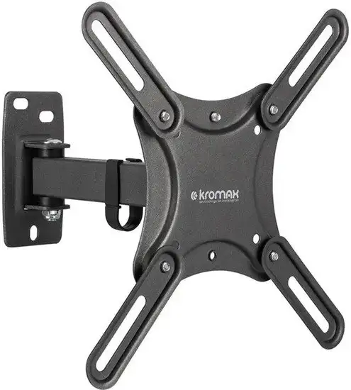 Кронштейн Kromax CORBEL-4 предназначен для крепления ЖК-телевизоров весом до 25 кг на стену. Он подходит для экранов с диагональю от 15 до 42 дюймов и совместим с креплениями VESA 75x75, 100x100, 100x200, 200x100 и 200x200. Кронштейн легко устанавливается и регулируется с помощью наклона на 12° и поворота на 90°, что позволяет выбрать комфортный угол просмотра. Он обеспечивает расстояние от стены от 66 до 206 мм, что помогает скрыть кабели и освободить пространство. Благодаря повороту и регулировке наклона, вы можете настроить положение ТВ для оптимального просмотра. В кронштейне есть встроенный кабель-канал для аккуратной укладки проводов и сохранения порядка. Он выполнен в черном цвете, что подходит к различным интерьерным стилям. Максимальная нагрузка позволяет безопасно держать современные телевизоры, а универсальный дизайн гарантирует удобство использования. Этот кронштейн сочетает простоту монтажа, надежность и функциональность, делая его хорошим выбором для домашнего кинотеатра или гостиной.