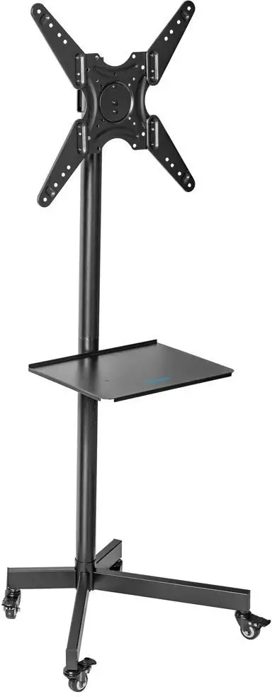 стойка для телевизора, 26-60", напольный, с регулировкой поворота, с регулировкой высоты, с полкой, с колесиками, наклон 10°, поворот 360°, регулировка высоты 900-1385 мм, цвет черный