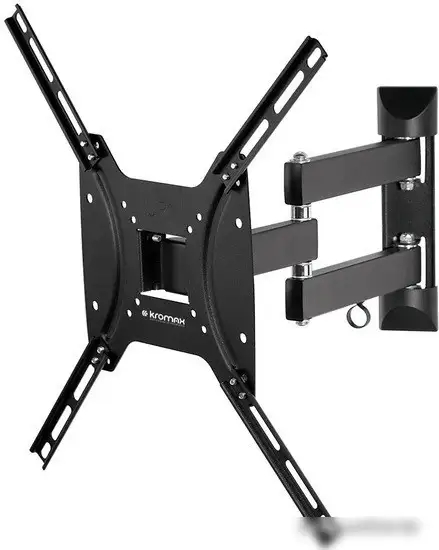 Кронштейн Kromax OPTIMA-404 предназначен для надежного крепления телевизоров с диагональю от 15 до 55 дюймов. Он устанавливается на стену и выдерживает нагрузку до 35 кг, что подходит для большинства современных моделей. Кронштейн позволяет наклонять экран на 12° и поворачивать на 90°, чтобы добиться оптимального обзора. Расстояние от стены можно регулировать от 66,5 до 444 мм, что обеспечивает дополнительное пространство или близкое расположение к стене. Он совместим с креплениями по стандартам VESA 75x75, 100x100 до 400x400, что делает его универсальным для разных телевизоров. Установка проста благодаря стандартным креплениям, а горизонтальный уровень отсутствует, поэтому важно правильно выставить кронштейн при монтаже.