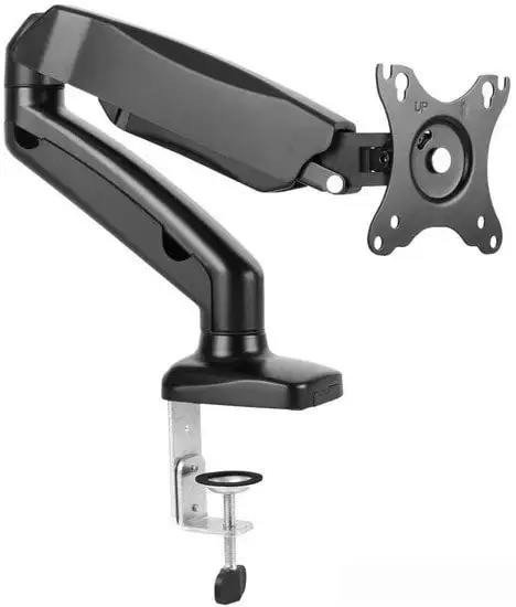 Кронштейн Ultramounts UM700 предназначен для крепления ЖК-мониторов диагональю 13–27 дюймов. Он устанавливается на стол и подходит для толщины от 10 до 85 мм. Крепление совместимо с VESA стандартами 75x75 и 100x100 мм, что обеспечивает универсальность. Максимальная нагрузка составляет 6 кг, позволяя закрепить большинство небольших мониторов и телевизоров. Устройство позволяет регулировать угол наклона на 90° и вращать экран на 90°, что помогает выбрать наиболее удобное положение. Он прост в установке и обеспечивает надежную фиксацию. Благодаря регулируемым параметрам, вы можете настроить угол экрана для комфорта при работе или просмотре. Кронштейн выполнен в черном цвете, что подходит к большинству интерьерных решений. Встроенный уровень отсутствует, поэтому для точной установки потребуется обычный уровень или внимательность.