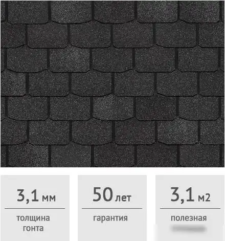 битумная черепица, 0.33x1 м, толщина 3.1 мм, гарантия 50 лет
