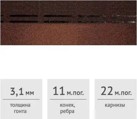 битумная черепица, 0.33x1 м, толщина 3.1 мм, гарантия 50 лет, цвет коричневый