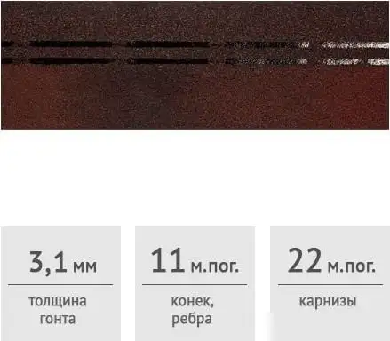 битумная черепица, 0.33x1 м, толщина 3.1 мм, гарантия 50 лет, цвет коричневый