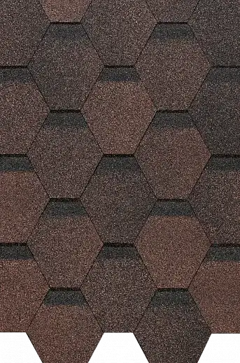 Гибкая черепица Docke PIE EURASIA Шестигранник коричневый — это надежный материал для кровли. Она изготовлена из прочного стеклохолста, что обеспечивает долговечность и стабильность конструкции на 10 лет. Уникальная посыпка из базальта и антрацита защищает черепицу от солнца и погодных условий, сохраняя её внешний вид. Благодаря технологии битумной сварки, каждая гонтовая пластина очень прочная и устойчивая к сильным ветрам и штормам. Эта черепица отлично подходит для небольших построек, таких как беседки, навесы и дачные дома. Она сочетает хорошее качество с доступной ценой, что делает её выгодным выбором.