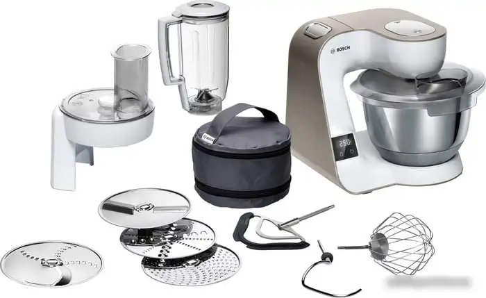 | Функции | блендер, взбивание, смешивание, замешивание дрожжевого теста, терка, шинковка, ломтерезка |