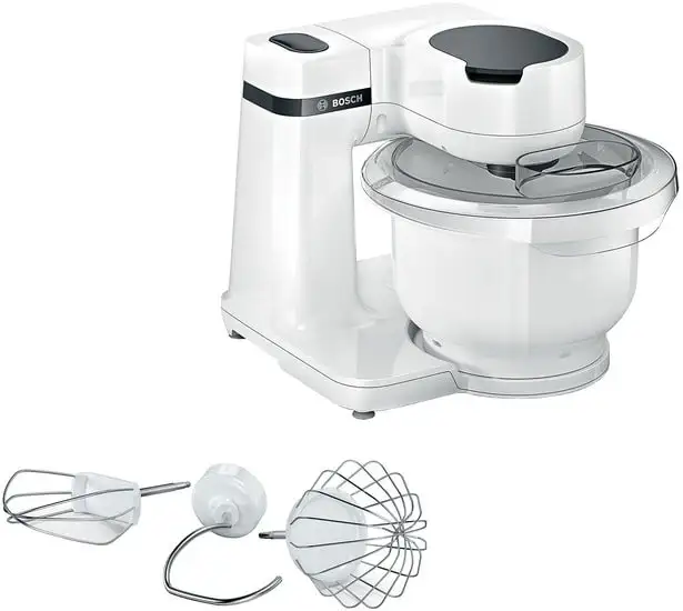 Кухонная машина Bosch MUMS2AW00 — это надежный помощник для кухни, который поможет взбить, смешать или замесить тесто. Ее мощность составляет 700 Вт, что позволяет эффективно обрабатывать продукты, а объем чаши — 3,8 литра, подойдет для приготовления блюд всей семье. Корпус и чаша сделаны из пластика, что делает устройство легким и удобным в использовании. Машина оснащена функцией планетарного смешивания и тремя скоростными режимами, а также режимом пароварки, чтобы приготовить полезную еду на пару. В комплекте есть насадки для теста, взбивания и нарезки кубиками, которые расширяют возможности приготовления. Есть место для хранения шнура, что помогает держать рабочее место аккуратным. Это простая и многофункциональная машина, которая хорошо подойдет для повседневных кулинарных задач.
