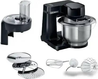 Кухонная машина Bosch MUMS2EB01 помогает вам быстро и легко готовить дома. Она выполняет функции взбивания, смешивания, замешивания теста, а также шинковки и терки для овощей и сыра. Мощность прибора составляет 700 Вт, а объем чаши — 3,8 литра, что позволяет готовить большие порции. Остальные функции включают планетарное смешивание и регулировку скорости в 4 режима. В комплект входит насадка для теста, венчик и диск для шинковки и терки, что расширяет возможности использования устройства. Благодаря материалу чаши из металла и корпусу из пластика, прибор хорошо устойчив и долго прослужит. Для удобства есть место для хранения шнура и защитная крышка на чашу. Эта модель не оснащена блендером, соковыжималкой или мясорубкой, но обладает всеми необходимыми функциями для домашней кухни.