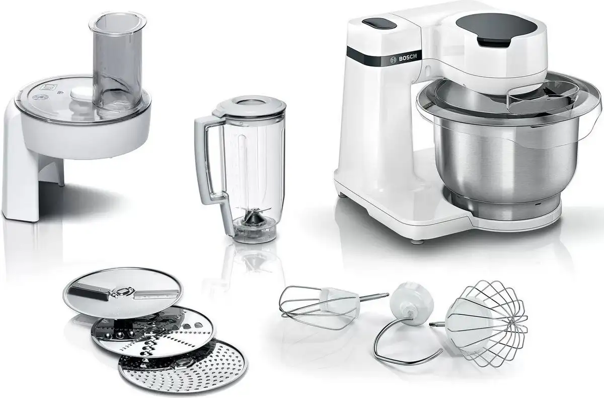 Кухонная машина Bosch MUMS2EW20 отлично подойдет для домашней кухни. Она оснащена двигателем мощностью 700 Вт, который легко справится с замешиванием теста, взбиванием и смешиванием продуктов. В комплект входят насадки для натирания, шинковки и теста, а также погружной блендер для приготовления пюре и коктейлей. Чаша объемом 3.8 литра выполнена из металла и предназначена для приготовления больших порций. Модель обладает функциями планетарного смешивания и регулировки скорости в четыре режима, что обеспечивает качественную обработку продуктов. В корпусе есть место для хранения шнура, а защитная крышка предотвращает разбрызгивание. Эта кухонная машина станет полезным помощником в любой кухне.