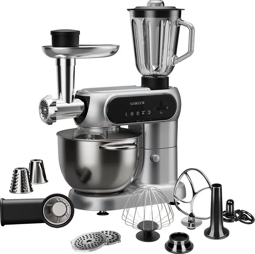 Кухонная машина Garlyn S-450 — это многофункциональный помощник на кухне, который поможет готовить быстро и легко. Она сочетает в себе мясорубку, блендер, насадку для взбивания и теста, а также овощерезку и шинковку, что позволяет выполнять разные задачи с одним устройством. Мощность 1800 Вт обеспечивает хорошую производительность, а регулируемая скорость до 7 уровней помогает подобрать подходящий режим. Большая чаша на 5,5 литров делает приготовление крупного объема блюд комфортным. В комплект входит множество насадок: для смешивания, взбивания, теста, нарезки и шинковки, что расширяет возможности использования. Устройство выполнено из прочного металла и занимает немного пространства на кухне. Это универсальный помощник, который поможет вам с приготовлением различных блюд быстро и удобно.