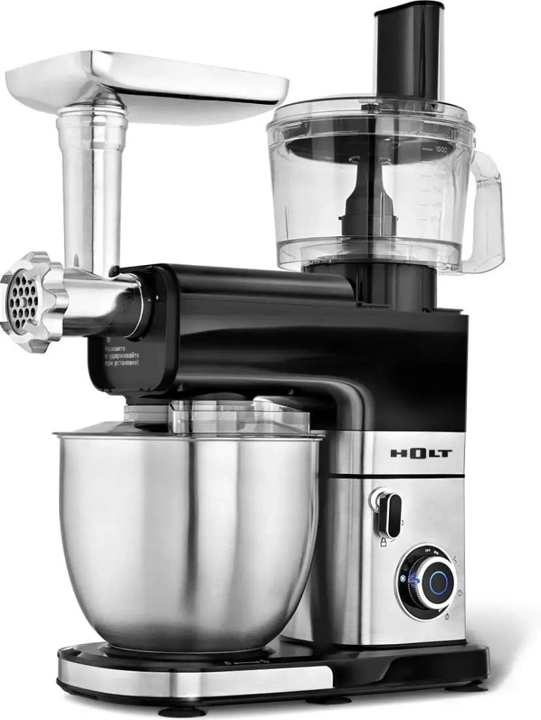 Кухонный комбайн Holt HT-FP-015 изготовлен в Китае и идеально подходит для домашней кухни. Он сочетает функции мясорубки, взбивания, смешивания, замешивания теста, измельчения, рубки, терки и шинковки. Мощность устройства составляет 2200 Вт, что обеспечивает быструю работу и хорошую производительность. Объем чаши — 5,5 литров, материал — металл, что делает ее прочной и долговечной. Комбайн имеет регулировку скорости с тремя режимами и импульсный режим для более точного управления. В комплект входит чаша с крышкой, мясорубка с тремя дисками и насадками для колбасы, кеббе, а также насадка для теста и венчик для взбивания. Также есть овощерезка с семью терками, а для нарезки — ломтерезка и насадки для картофеля фри. Благодаря резиновым ножкам-комбайн устойчиво стоит на кухне, а защитная крышка обеспечивает безопасность при работе.