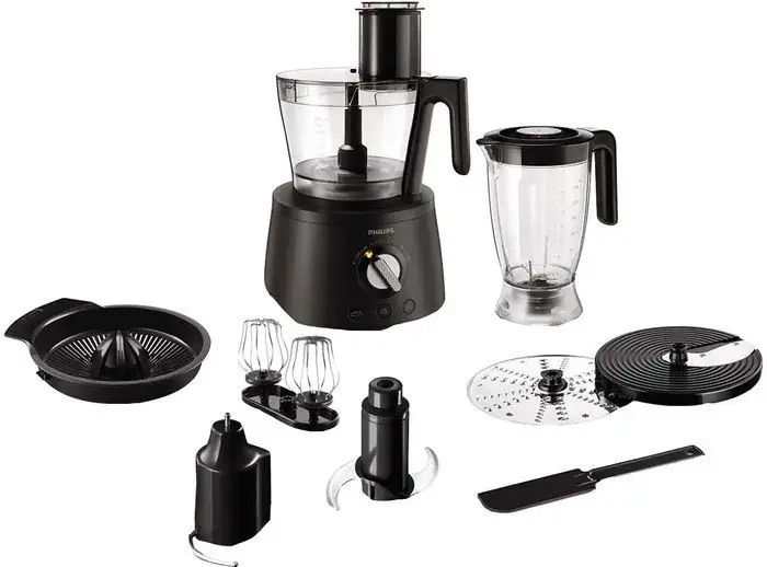 Кухонный комбайн Philips HR7776/90 обладает мощностью 1300 Вт, что позволяет легко обрабатывать различные продукты. Он регулирует скорость до 12 уровней, а диапазон вращения составляет от 575 до 20 000 об/мин, благодаря чему можно точно настроить работу. Чаша объемом 3,4 литра подходит для приготовления больших порций, а дополнительный блендер объемом 2,2 литра отлично подойдет для смузи и соусов. В комплект входят насадки для нарезки кубиками, шинковки, просеивания муки, взбивания и теста, что делает комбайн очень универсальным. Он оснащен импульсным режимом, который облегчает работу с трудными продуктами. Корпус выполнен из прочного пластика и имеет компактные размеры, что позволяет легко найти для него место. Комбайн отлично справляется с измельчением, перед этим он может использовать насадку для пюре или теста. Так устройство помогает быстро подготовить ингредиенты для любой кухни. Благодаря широкому набору насадок, вы сможете выполнять разные задачи — от шинковки овощей до взбивания теста. Это надежный помощник, который сделает вашу готовку проще и приятнее.