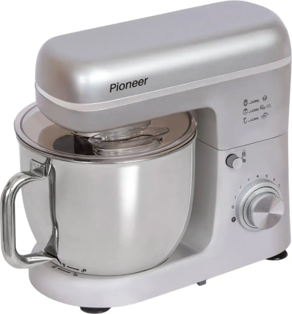 Планетарный миксер Pioneer MX360 выполнен из прочного металла и плasticа, он подходит для взбивания, смешивания и замешивания дрожжевого теста. Мощность прибора составляет 1800 Вт, что позволяет быстро и эффективно готовить любые блюда. В миксере есть 8 режимов скорости и импульсный режим, что дает полный контроль над процессом. Объем чаши — 4,5 литра, она изготовлена из нержавеющей стали и оснащена защитной крышкой для безопасности. В комплект входят насадки для теста, взбивания и перемешивания, а также книга рецептов, которая поможет вам открыть новые блюда. Планетарное смешивание гарантирует равномерную обработку ингредиентов. Миксер не имеет встроенного термоя, таймера или функции взвешивания, однако легко управляется и безопасен в использовании. Эргономичный дизайн и дополнительные чаши делают его удобным для длительной работы. Это устройство подойдет для домашних кулинаров, которые ценят надежность и качество.
