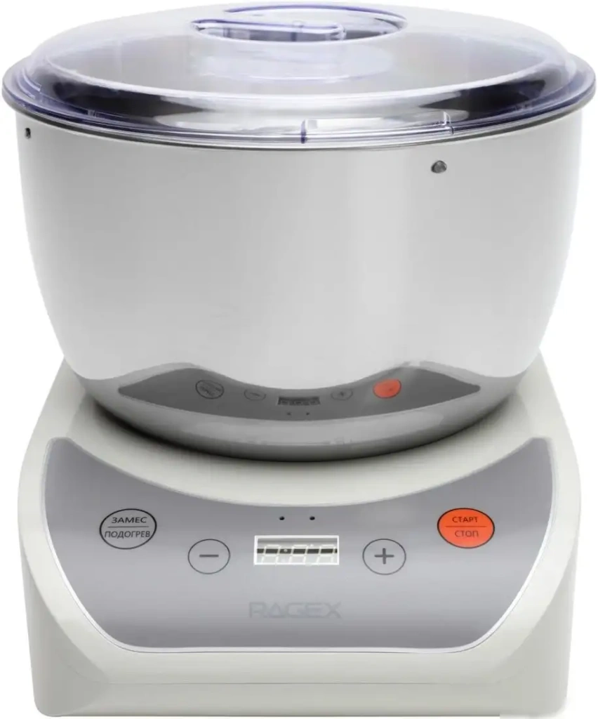 Тестомесильная машина RAGEX R2001-105 предназначена для замешивания дрожжевого теста и имеет мощность 550 Вт. Она оснащена металлической чашей объемом 5 литров, которая обеспечивает надежное и равномерное замешивание. Корпус машины изготовлен из прочного пластика, а в комплект входит насадка для теста и защитная крышка от брызг. Устройство не регулирует скорость вращения, однако его масса и конструкция позволяют стабильно работать. Есть таймер, который помогает точно контролировать процесс замешивания. Машина обладает компактными размерами и удобным дизайном, подойдет для домашнего использования. В комплекте также есть руководство пользователя и транспортировочная коробка, что облегчает хранение. Благодаря качественным материалам и надежной сборке, машина прослужит долго и будет удобна в использовании. Она отлично справляется с задачей замесить тесто быстро и без лишних хлопот.