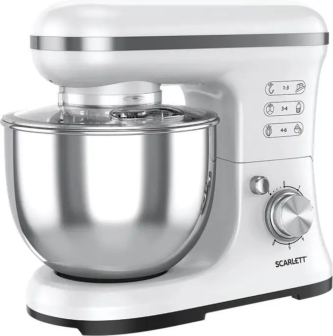 Планетарный миксер Scarlett SC-SM10S50 произведён в Китае и предназначен для взбивания, смешивания и замешивания теста. Он обладает мощностью 1400 Вт, что позволяет быстро работать с разными ингредиентами. Миксер имеет регулируемую скорость из 6 вариантов, что удобно для контроля процесса. Объем чаши составляет 5,2 литра, а материал — металл, что обеспечивает долговечность и стабильность. В комплекте есть насадка для теста, венчик и лопатка для смешивания, что делает работу более удобной и многофункциональной.