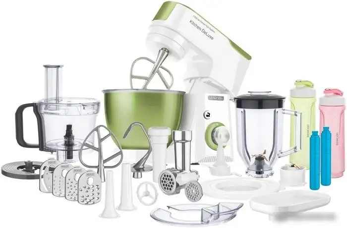 1000 Вт, планетарное смешивание, объем чаши: 4.5 л, терки, измельчитель, мясорубка, блендер