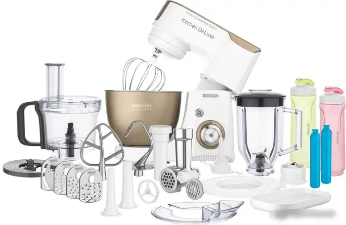 1000 Вт, планетарное смешивание, объем чаши: 4.5 л, терки, измельчитель, мясорубка, блендер