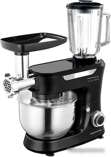 Кухонная машина Zigmund & Shtain De Luxe ZKM-998 — это многофункциональный прибор для домашней кухни, который сочетает в себе мясорубку, блендер, насадки для взбивания и замешивания теста. Она имеет мощность 1200 Вт и объем чаши 5 литров, что позволяет быстро и удобно готовить большие порции. Корпус сделан из прочного пластика, а чаша — из металла, что обеспечивает долговечность. Устройство регулируется по скорости в шести режимах, есть функция импульсного режима для точной работы. В комплекте идут насадки для теста, пюре и венчик, что расширяет возможности использования. Так как в машине есть защитная крышка и возможность работы планетарного типа, работа происходит более качественно и безопасно. Этот прибор отлично подойдет для тех, кто хочет упростить процесс готовки и иметь многофункциональный помощник на кухне.