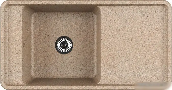 Кухонная мойка Акватон Беллис 97 выполнена из искусственного камня на основе мраморной крошки, что делает её прочной и красивой. Ее установку можно провести врезая прямо в столешницу, а форма — прямоугольная с одной чашей. Глубина чаши составляет 23,2 см, что удобно для мытья посуды и крупных предметов. Мойка оборачиваемая, поэтому вы можете разместить ее так, как вам удобнее. В комплект входит слив, перелив и сифон, что облегчает монтаж и использование. Её цвет — песочный, он хорошо сочетается с разными стилями кухни. Благодаря простым функциям и надежной конструкции эта мойка прослужит долго и не потребует сложного ухода.