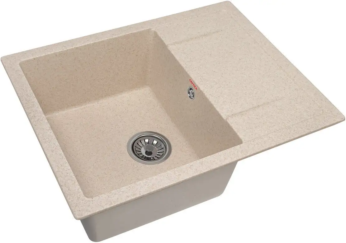 Кухонная мойка ARFEKA ZIA 65 Warm Beige легко устанавливается врезным способом на столешницу. Она имеет прямоугольную форму и сделана из искусственного камня на основе гранитной крошки, что обеспечивает прочность и долговечность. Мойка оснащена одной глубокой чашей глубиной 20 см, вмещающей большое количество посуды и продуктов. Основная чаша оборачиваемая, что помогает удобно её расположить в кухне. В комплект входит сливная арматура, которая быстро и надежно соединяет мебель и устройство. Ширина мойки 65 см, подходит для шкафов шириной 50 см, а длина — 51 см. Диаметр сливного отверстия составляет 3.5 дюйма, что обеспечивает легкую установку сливных систем. Внутренние размеры чаши — 44 на 36 см, что дает достаточно пространства для различных задач. Благодаря простоте конструкции и стандартным функциям, эта мойка станет удобным решением для любой кухни.